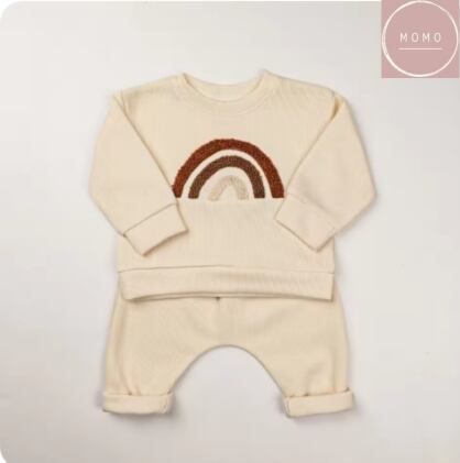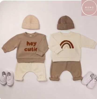 おしゃれで可愛いベビー上下セットが登場!デザインされた、春にぴったりなカジュアルなトップスとゆったりとしたパンツの2ピースです⭐︎新生児のデイリーコーディネートにぴったりで、着心地も抜群です✨