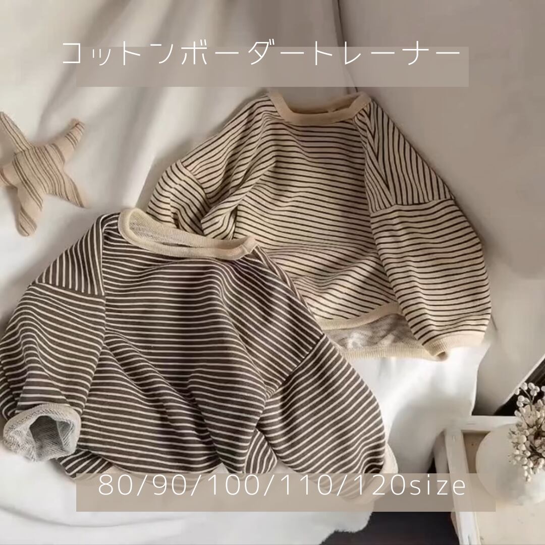 コットンボーダートレーナー 80〜120cm ホワイト ブラウン着やすい
