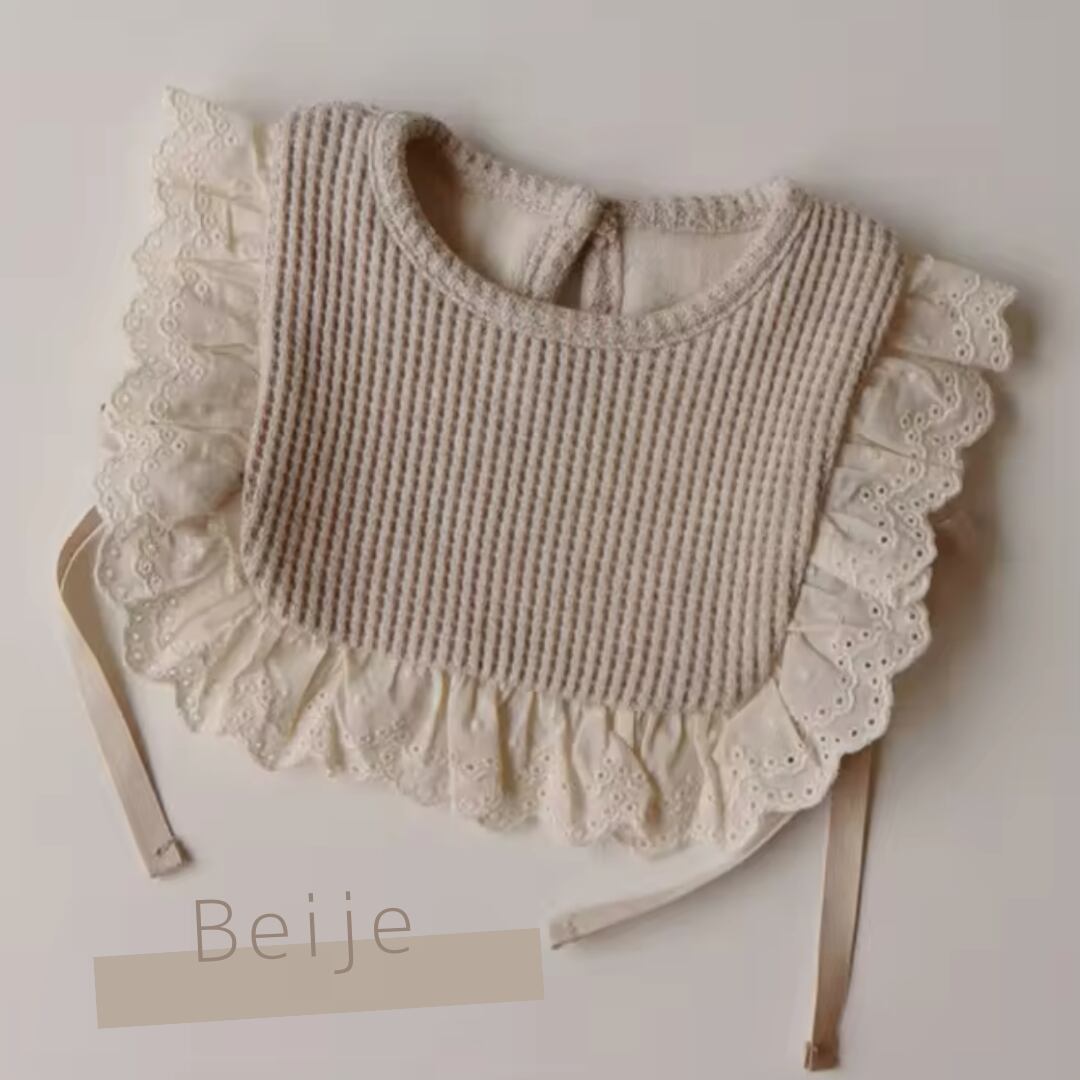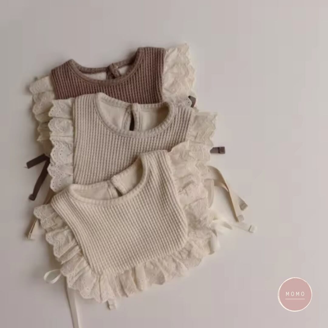 ワッフル生地のベビービブ コットン フリル